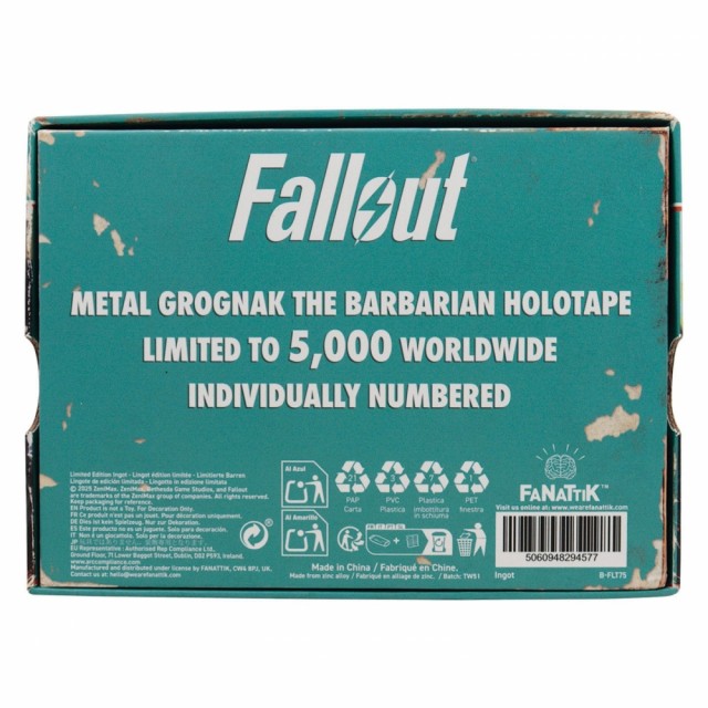 Rett fra sidene i førkrigs-tegneserien Grognak the Barbarian kommer denne samleutgaven av en holotape som lar deg svinge øksen som den ultimate helten – uten å tiltrekke deg en horde med Feral Ghouls. Basert på den Vault-Tec-godkjente Pip-Boy-rollespillutgaven Grognak and the Ruby Ruins, har denne replika-holotapen et kraftig preget design med detaljer på begge sider, laget for Vault Dwellers som krever det lille ekstra av moro. Begrenset til 5 000 eksemplarer på verdensbasis, og hver holotape-replika er individuelt nummerert – noe som gjør din helt unik. Med en størrelse på 85 x 70 mm er dette et tungt og solid samleobjekt. Den leveres også med en stativholder i esken, slik at du enkelt kan vise frem dine Grognak-triumfer. Offisielt lisensiert Begrenset opplag på 5 000 Individuelt nummerert 85 x 70 mm