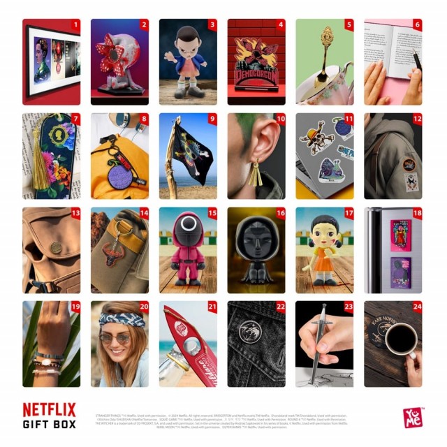 24 premium-gaver – Boksen har 24 nummererte luker som speiler Netflix-grensesnittet, med nye overraskelser bak hver dør.