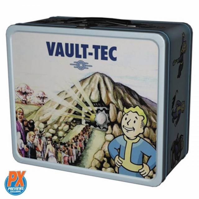 Previews Exclusive! Som sett i mobilspillet Fallout Shelter, viser denne Vault-Tec metall-matboksreplikaen kunst fra et samfunn før atomkrigen! Denne samlebare Fallout Shelter Pre-Nuclear Prop Replica Tin matboksen - Previews Exclusive har livlige fargeutskrifter og et slitesterkt rustbeskyttende belegg med værbitte detaljer.