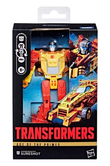 Opplev det episke universet til Transformers-robotene med Transformers Age of the Primes Targetmaster Sureshot-figuren! Denne Deluxe Class-figuren på 14 cm kan forvandles fra robot til offroad-dunebuggy i 25 trinn, og leveres med en mini-figur av Spoilsport som kan forvandles til en blaster. Med detaljerte bevegelige ledd og avtakbart tilbehør er Targetmaster Sureshot-actionfiguren et flott tilskudd til enhver samling.