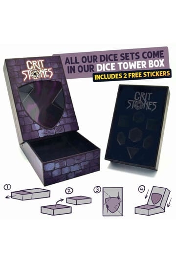 Liquid Core Resin Dice Disse RPG-terningene er laget av høykvalitets resin og har skarpe kanter. Inne i hver terning finnes en flytende kjerne som gir en unik «snøglobeeffekt». Når terningene rulles, virvler væsken rundt, og partiklene inni glitrer og skinner. Med disse gnistrende terningene vil du garantert imponere alle rundt bordet! Terningegenskaper Resinterninger med skarpe kanter: Laget av førsteklasses resin og håndstøpt for presisjon. Hver terning har en flytende kjerne med glitrende partikler på innsiden. Komplett sett med 7 terninger: Inneholder alle standard polyhedrale terninger – d4, d6, d8, d10, d12, d20 samt prosentterning (d10 merket i tiere). Balanserte kast: Hver terning er nøye balansert for rettferdig spill. Dype, stansede tall med håndmalte detaljer gir god og tydelig lesbarhet. Unik terningtårn-eske: For å gi deg maksimal verdi har vi utviklet en unik eske som både beskytter terningene med skuminnlegg av høy kvalitet og kan brukes som terningtårn. Esken leveres også med to premium GlassStaff-vinylklistremerker og en spennende overraskelse som venter når du åpner settet. Passer til mange rollespill: Kan brukes til en lang rekke RPG- og TTRPG-spill som Dungeons & Dragons, Heroscape, Shadowrun, Starfinder, Pathfinder, Call of Cthulhu, Star Wars RPG, Blades in the Dark, Savage Worlds, Warhammer og mange flere rollespill og kortspill. Innhold Høykvalitets resinterningesett med 7 terninger: d4, d6, d8, d10, d10 % (00–90), d12 og d20. Inneholder: 7 terninger