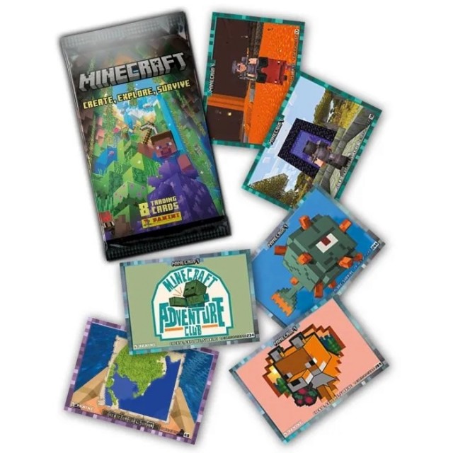 Hver pose inneholder 8 kort med karakterer, skapninger, blokker og ikoniske øyeblikk fra spillet. Samle dem alle, bytt med venner og fullfør din egen Minecraft-samling!
